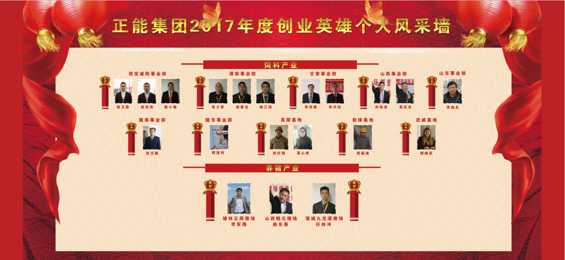 2018年1月23日,正能集團2017年度創(chuàng)業(yè)工作年會王者之師頒獎盛典在炎帝故里寶雞萬福國際酒店拉開帷幕。正能集團各事業(yè)部英雄戰(zhàn)將200余人歡聚一堂,共襄盛會。引爆能量,創(chuàng)新創(chuàng)業(yè)! 榜樣催人奮進,業(yè)績昭著千秋。為表彰優(yōu)秀,樹立典型,激勵全體創(chuàng)業(yè)將帥披荊斬棘再接再厲,分別頒發(fā)創(chuàng)業(yè)英雄個人獎和創(chuàng)業(yè)英雄團隊獎、永爭第一金獎三個獎項。“2017創(chuàng)業(yè)英雄獎” 19 名 秦西事業(yè)部 趙創(chuàng)周 陳小敏 陜南事業(yè)部 徐衛(wèi)霖 渭南事業(yè)部 張少軍 楊春龍 楊江濤 甘肅事業(yè)部 宋正甫 李興鈺 山西事業(yè)部 吳慶東 隴東事業(yè)部 穆選利 隴南事業(yè)部 張漢順 山東營銷公司 李海永 高陵基地 徐紀穩(wěn) 鬲心疼 新絳基地 郭福海 武威基地 穆曉英