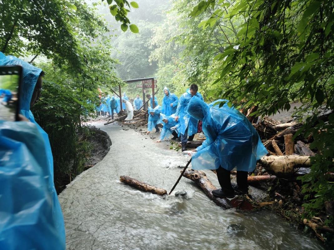 早餐后,開啟一天的團(tuán)隊建設(shè)活動,活動主題:“雨中爬山”,活動地點(diǎn):嵐皋縣南宮山國家森林公園,活動目標(biāo):沖頂南宮山金頂。上午9點(diǎn),風(fēng)雨無阻,所有參會老師整齊列隊,在6位旗手的帶領(lǐng)下,身穿藍(lán)色雨衣,統(tǒng)一來到山門口,隨著一聲令下,大家冒雨向最高點(diǎn)金頂進(jìn)軍,大雨滂沱,也擋不住正能人前進(jìn)的腳步,山洪頻發(fā),也澆不滅正能人登頂?shù)募で,期間,大家團(tuán)結(jié)一致、齊心協(xié)力,手挽手,相互攙扶、互相照顧、不畏艱險,心理卯足一股勁,不到山頂誓不罷休,從始至終體現(xiàn)出正能人不懼艱險、奮勇向前、英勇無畏不服輸?shù)膫ゴ髣?chuàng)業(yè)精神和非凡創(chuàng)業(yè)干勁。經(jīng)過近四個小時的持續(xù)攀登,大家渾身濕透,分不清汗水、淚水和雨水……,所有老師全部成功登頂,又一次為團(tuán)建交上了滿意的答卷。 董雄老師總結(jié)本次雨中爬山活動:體現(xiàn)了團(tuán)隊的重要性,沒有團(tuán)隊,個人將失去意志力,將很難登頂。 收獲,這次特別的雨中爬山活動,別具一格,熔煉了心智、磨煉了意志、突破了自我、增強(qiáng)了信心、提升了團(tuán)隊意識、培養(yǎng)了團(tuán)隊精神。