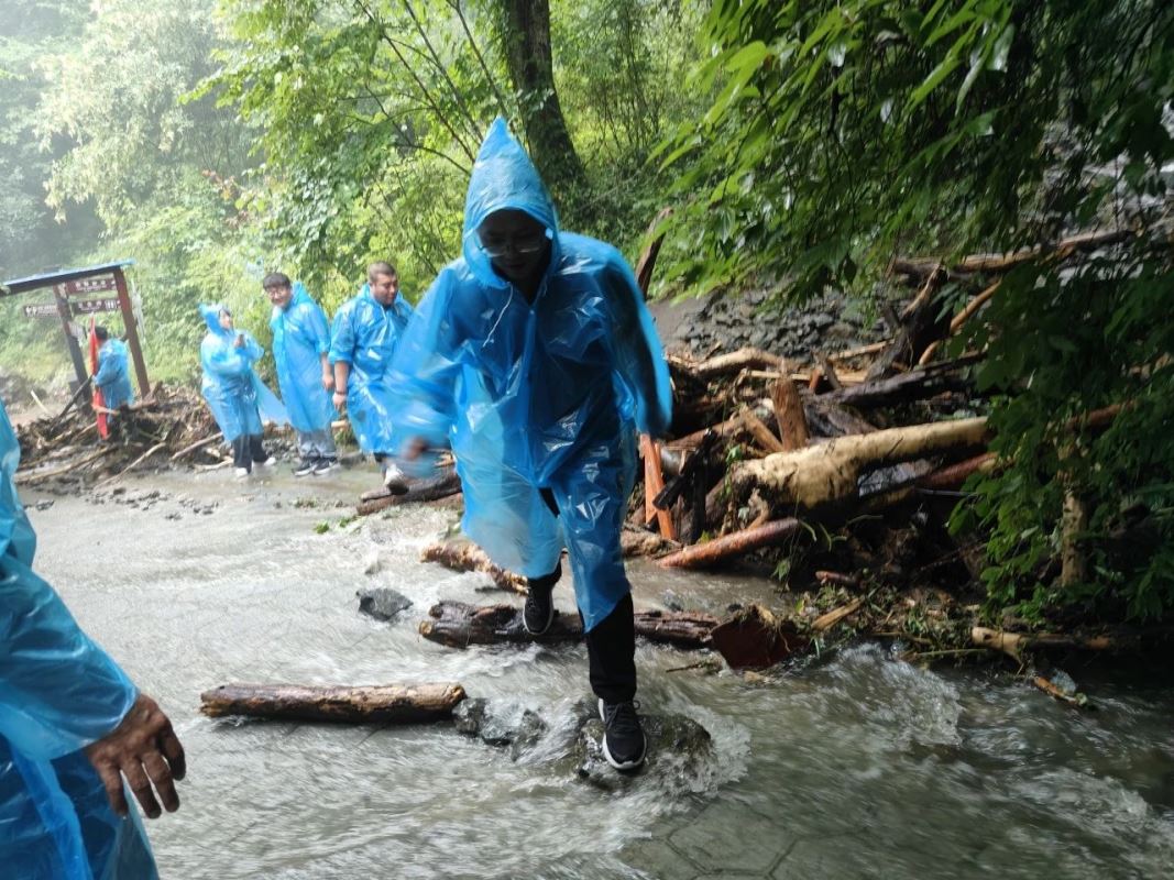 早餐后,開啟一天的團(tuán)隊建設(shè)活動,活動主題:“雨中爬山”,活動地點(diǎn):嵐皋縣南宮山國家森林公園,活動目標(biāo):沖頂南宮山金頂。上午9點(diǎn),風(fēng)雨無阻,所有參會老師整齊列隊,在6位旗手的帶領(lǐng)下,身穿藍(lán)色雨衣,統(tǒng)一來到山門口,隨著一聲令下,大家冒雨向最高點(diǎn)金頂進(jìn)軍,大雨滂沱,也擋不住正能人前進(jìn)的腳步,山洪頻發(fā),也澆不滅正能人登頂?shù)募で,期間,大家團(tuán)結(jié)一致、齊心協(xié)力,手挽手,相互攙扶、互相照顧、不畏艱險,心理卯足一股勁,不到山頂誓不罷休,從始至終體現(xiàn)出正能人不懼艱險、奮勇向前、英勇無畏不服輸?shù)膫ゴ髣?chuàng)業(yè)精神和非凡創(chuàng)業(yè)干勁。經(jīng)過近四個小時的持續(xù)攀登,大家渾身濕透,分不清汗水、淚水和雨水……,所有老師全部成功登頂,又一次為團(tuán)建交上了滿意的答卷。 董雄老師總結(jié)本次雨中爬山活動:體現(xiàn)了團(tuán)隊的重要性,沒有團(tuán)隊,個人將失去意志力,將很難登頂。 收獲,這次特別的雨中爬山活動,別具一格,熔煉了心智、磨煉了意志、突破了自我、增強(qiáng)了信心、提升了團(tuán)隊意識、培養(yǎng)了團(tuán)隊精神。
