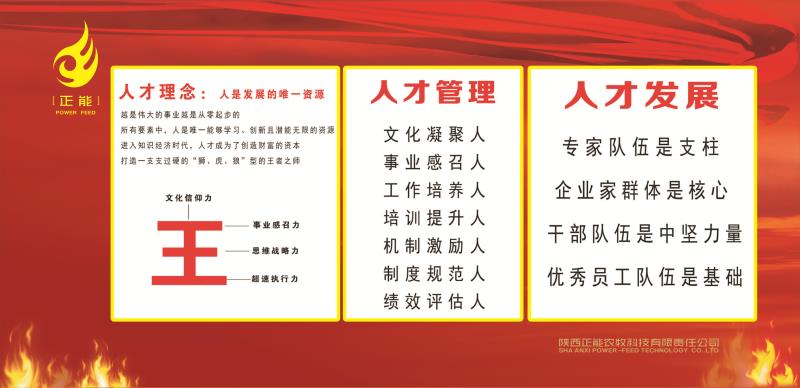 選擇比努力更重要,我們生在這樣一個快速變化的時代,我們選擇了快速發(fā)展的行業(yè),因為我們心懷夢想,渴望成功,所以我們必將會取得成功。就一定能創(chuàng)造屬于自己、屬于行業(yè)的英雄傳奇! 陜西正能農牧科技有限責任公司的創(chuàng)立是飼料行業(yè)強強聯合的典范,是西北區(qū)域唯一兼具上市公司雄厚資本和本土創(chuàng)業(yè)團隊人才、模式雙重優(yōu)勢的優(yōu)秀集團企業(yè)。公司始終堅持“以人為本、德才兼?zhèn)、唯才是?rdquo;的核心發(fā)展觀,把人才作為企業(yè)長效發(fā)展的第一財富去用心經營,至今已吸引了來自全國各地的數家知名飼料/養(yǎng)豬企業(yè)的銷售精英人才加盟匯聚正能,成就一番事業(yè)!